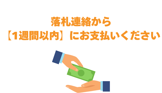 1週間以内のお支払いが確認できない場合、落札は取消になりますのでご了承ください。
