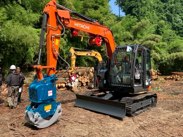 ZX75US-5B グラップルパッケージ仕様(日立建機)をベースに、高性能な木材グラップルと地引ウインチを取付いたしました。