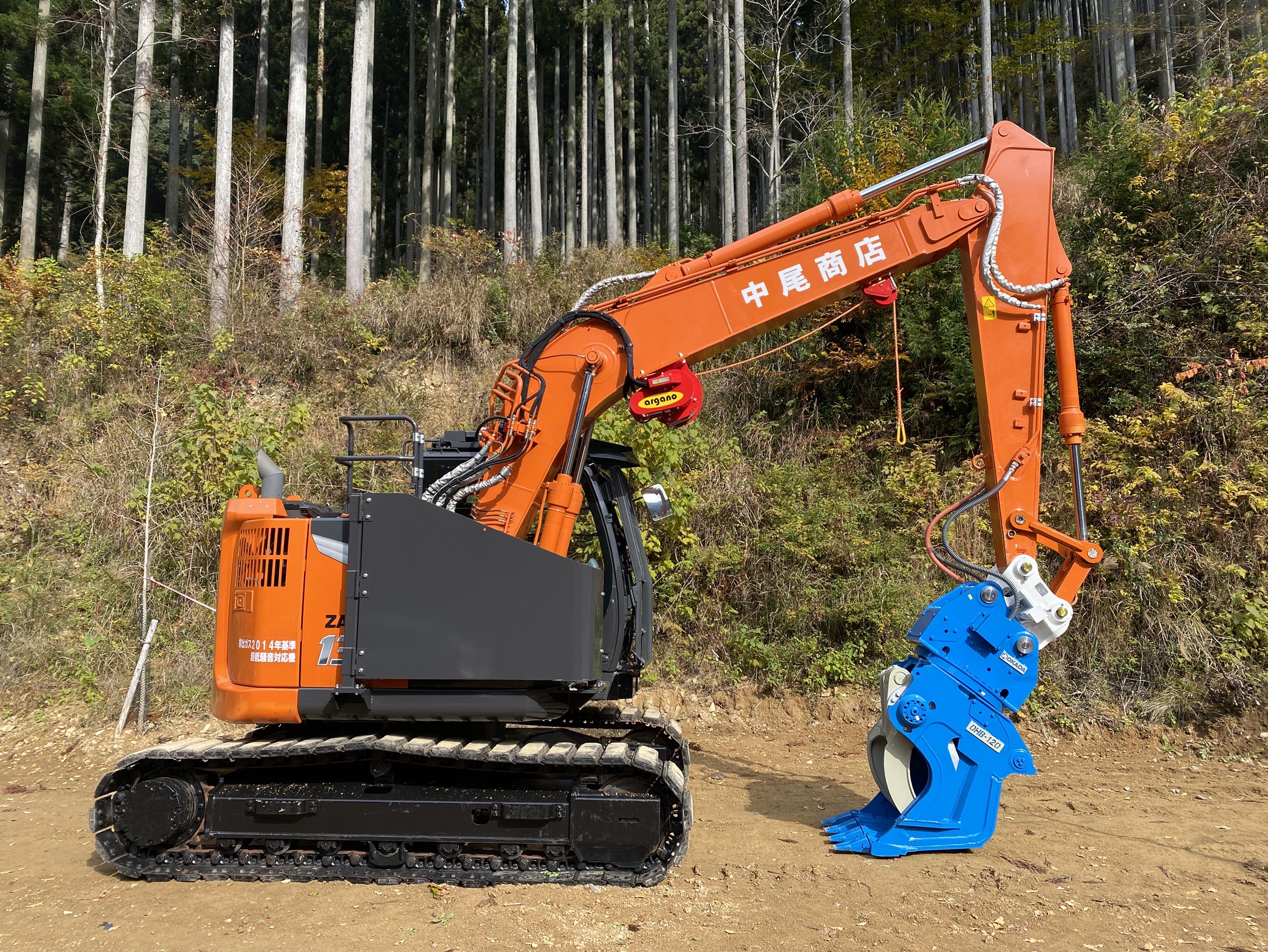 先日、兵庫県宍粟市の中尾商店様へ、日立建機「ZX135USK-7」の中古機をベースにした林業機械を納入いたしました。