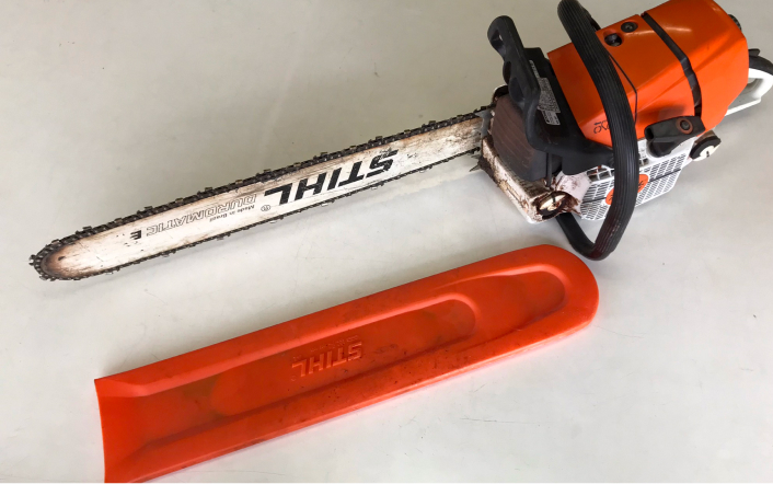 機械が入れない狭い空間での作業や、機械では掴みきれない太い原木の作業に使われます。